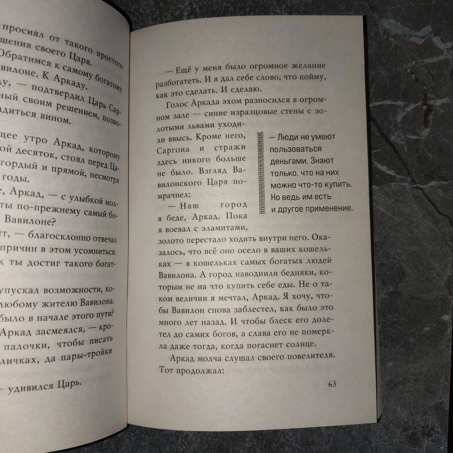 Легко усваивается. Притчи делают сложные финансовые концепции понятными. Практично. Советы вроде «откладывай 10 % дохода» работают даже сегодня. Мотивирует. Истории героев показывают: стать богатым может каждый, кто действует последовательно.
