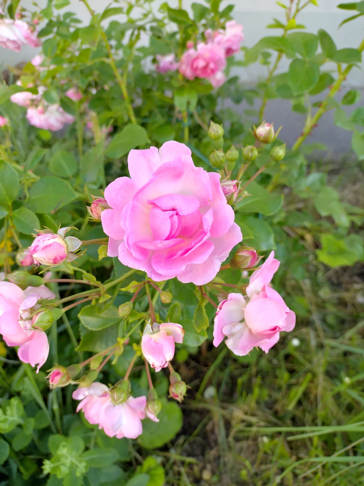 Куст роз во дворе радует глаз нежными розовыми цветами, которые словно фарфоровые колокольчики украшают ветви. Листья насыщенного зелёного цвета создают гармоничный фон для изящных бутонов. Цветы источают тонкий аромат, наполняя воздух свежестью и романтикой. Этот куст — настоящее украшение сада, которое привлекает внимание своей природной красотой.