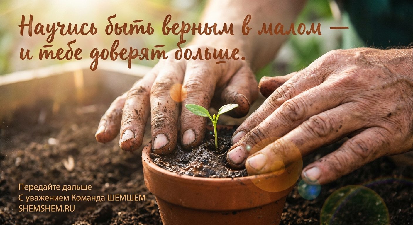 Нам часто кажется, что счастье и успех — это нечто грандиозное, что случится «потом». Но жизнь проверяет нас в тишине будней. Как ты относишься к маленькому поручению? Как хранишь чистоту в простых словах? Как заботишься о том, что еще не приносит плодов? Верность в малом — это не обязанность, а искусство. Это почва, на которой Жизнь строит твое будущее. Если ты умеешь беречь искру, тебе доверят разжечь огонь.
