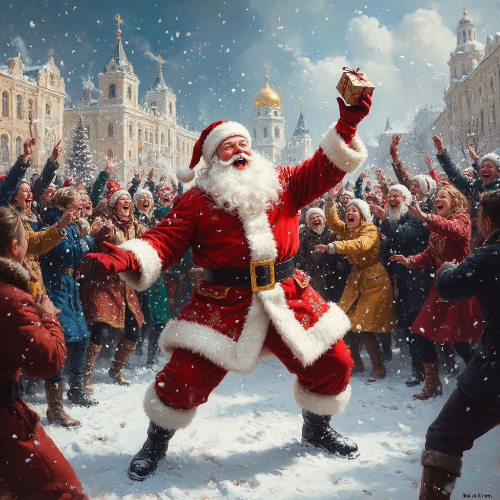Перед вами яркая, наполненная жизнью картина, которая словно переносит нас в самый разгар зимнего праздника. Мы приглашаем вас стать соавторами — придумать для этого изображения название и поделиться своими впечатлениями!