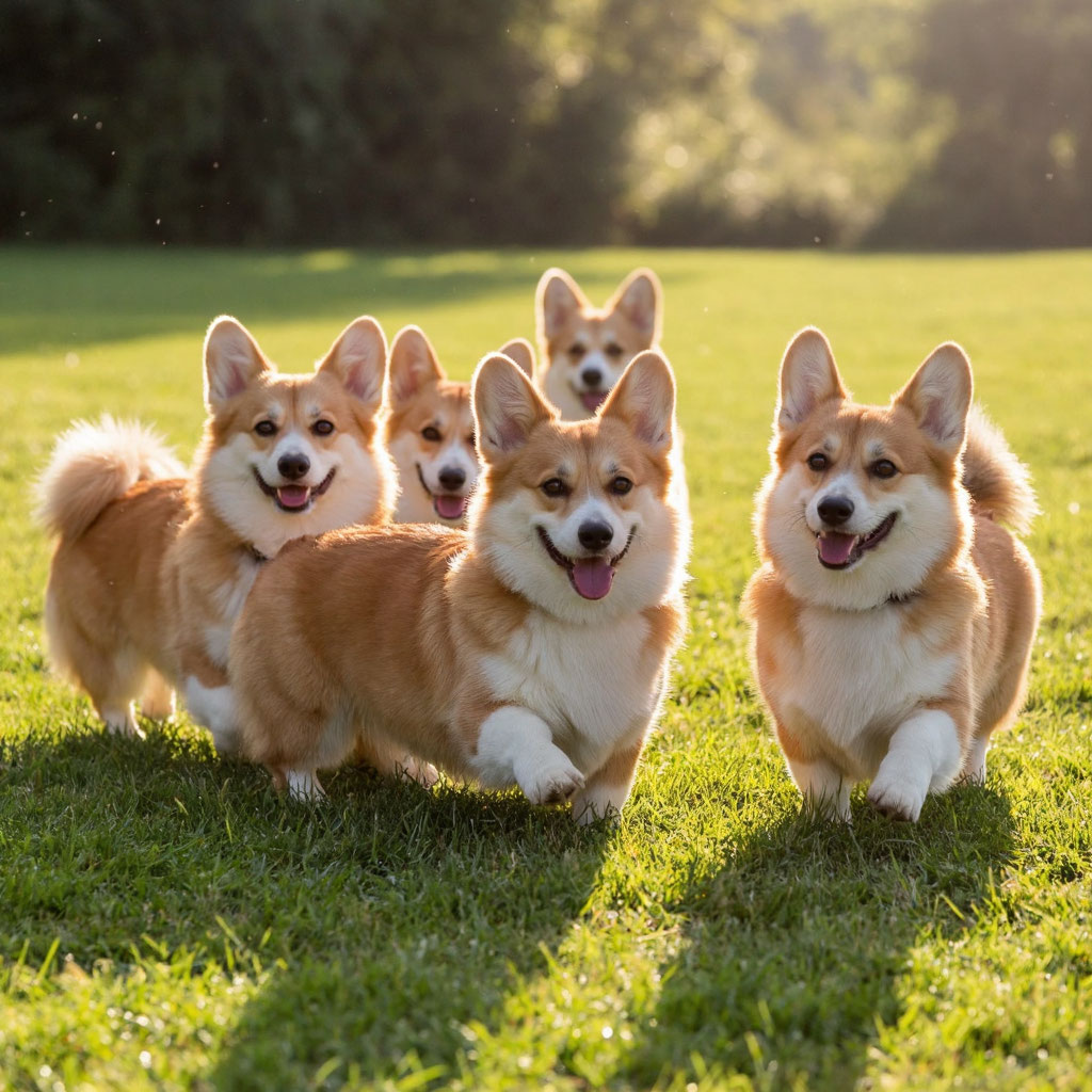 Посмотрите на этих озорных малышей! На фото — вельш-корги пемброки, которые просто обожают бегать и веселиться. У них такие милые мордочки, будто они всегда улыбаются!