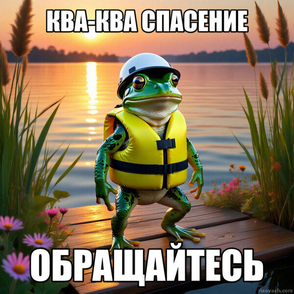 — Ква-ква, держись! — кричит Лягушка и прыгает в воду.